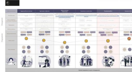 Проведены интервью со всеми сотрудниками салона, создана Карта путешествия сотрудника (EJM), даны рекомендации по улучшениям.